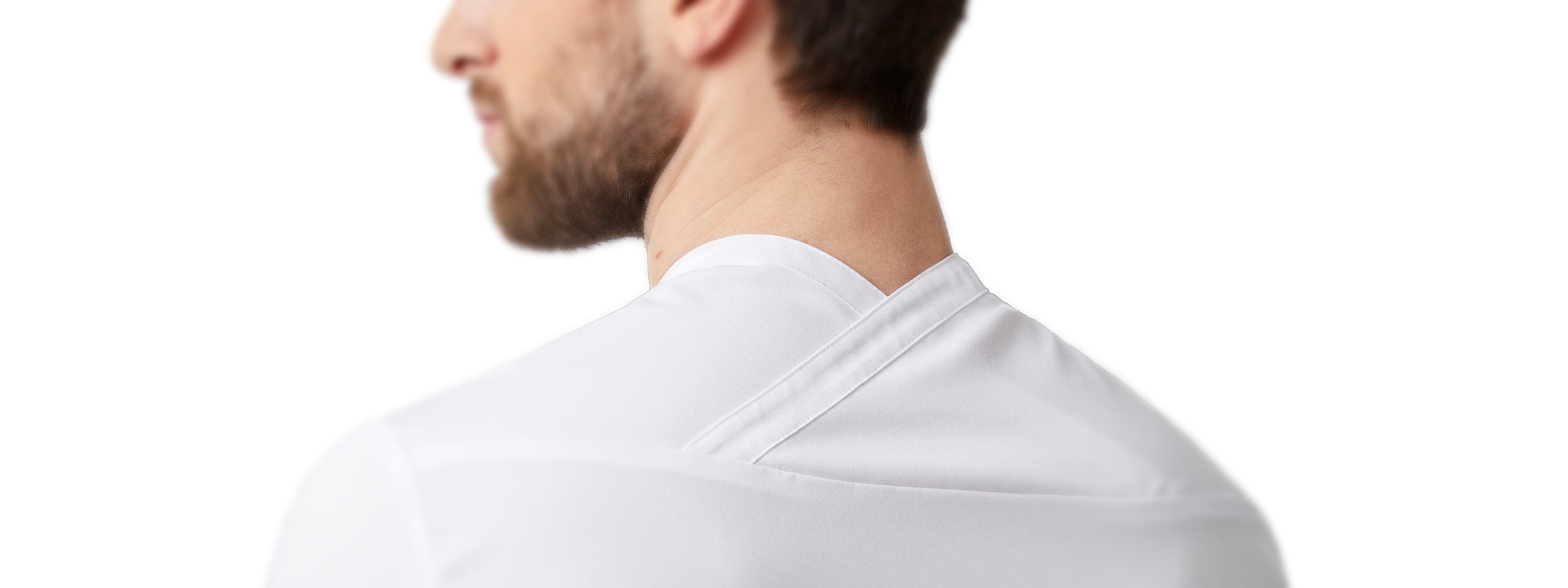 Our ergonomic neck design was developed with this aspect in mind. Tested by the Hohenstein Laboratories and approved by a focus group, our design alleviates the daily discomfort often caused by workwear.